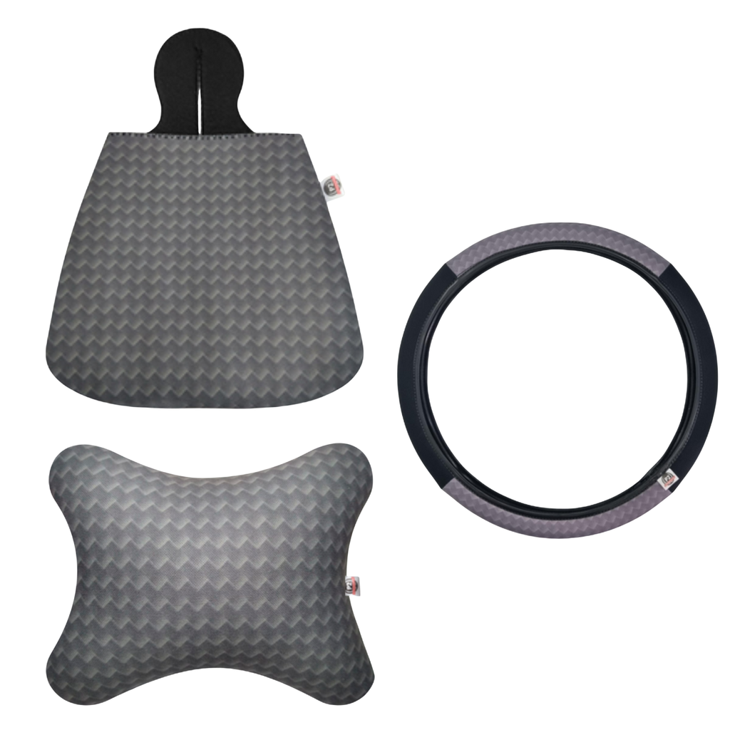 Praticidade, conforto e estilo para o seu carro. O kit automotivo em cores modernas e elegantes é confeccionado em neoprene 2mm, material resistente, lavável e de fácil manutenção. A lixeira ajuda a manter o interior do veículo sempre limpo e organizado, a almofada de pescoço proporciona apoio e bem-estar durante viagens e trajetos diários, e a capa de volante oferece uma pegada firme e agradável, tornando a direção mais confortável e segura. Disponível em diversas cores para combinar com o interior do seu carro.