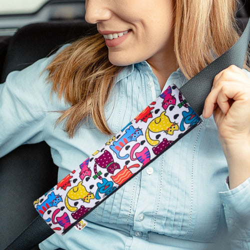 Além do Neoprene, há uma camada acolchoada o que proporciona conforto ao utilizar o cinto de segurança e cria um toque personalizado.