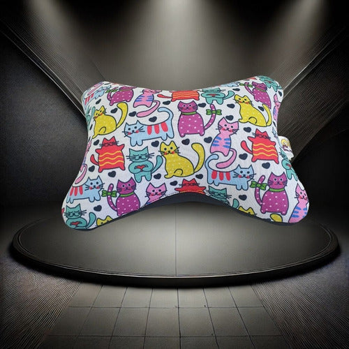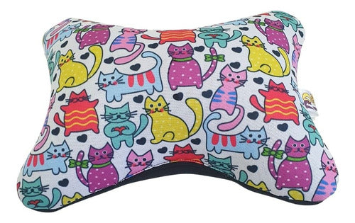 Almofada Apoio Cervical De Pescoço Para Carro- Gato Colorido