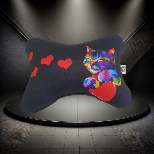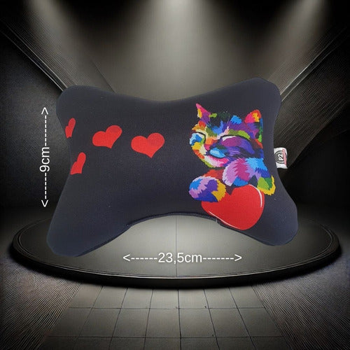 Almofada Apoio Cervical De Pescoço Para Carro - Gato Coração