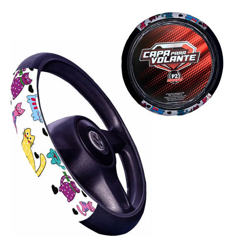 Capa De Volante Em Neoprene Preto - Gato Colorido