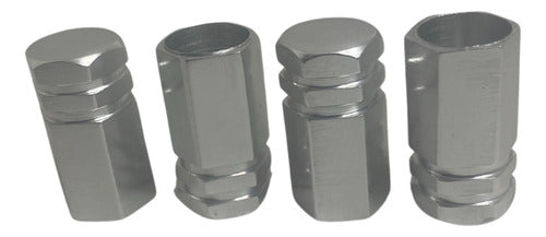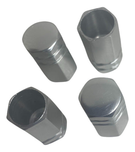 Tampa De Válvula Pneu Carro Sextavada Grande 4pçs - Prata