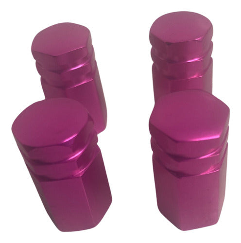 Tampa De Válvula Pneu Carro Sextavada Grande 4pçs - Rosa